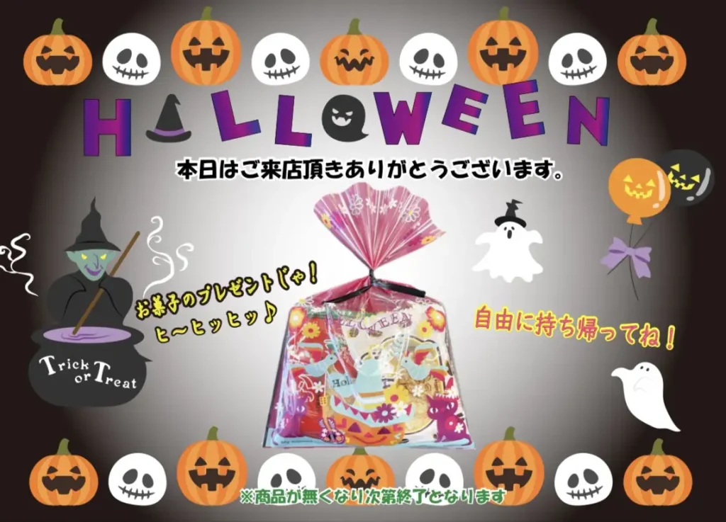 ハッピーハロウィンということで、10月27日(月)から数量限定でお菓子のプレゼントを致します 🎃