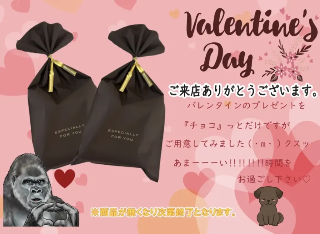 【FOOFOO】バレンタインプレゼント(数量限定)致します。 いつもご利用ありがとうございます。 バレンタインのプレゼントを『チョコ』っとだけですがご用意してみました🎁 あまーーーい!!時間をお過ごし下さい❤️ ※商品が無くなり次第終了となります